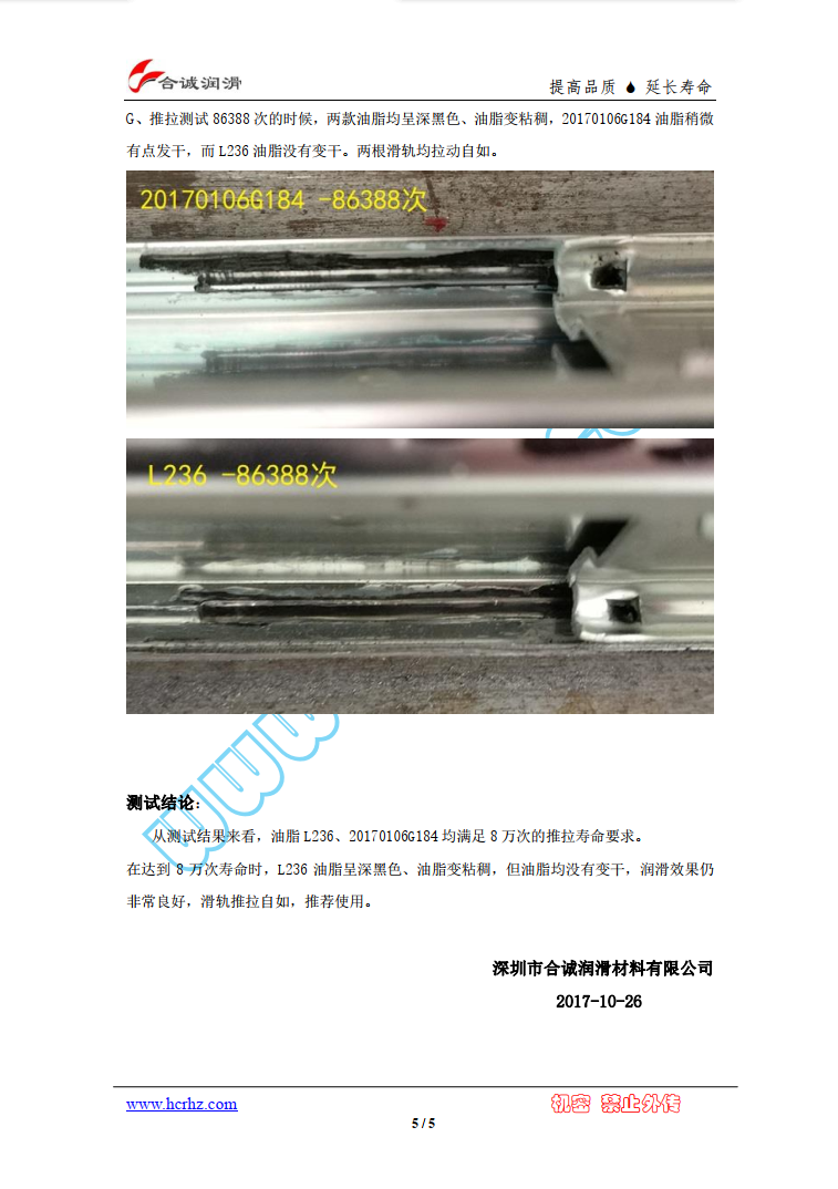 ※、產品與塑膠輪做兼容性測試,首先保證油脂與塑膠輪不產生化學反應;